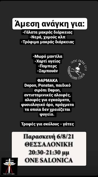 Ανταποκρινομενοι στο κάλεσμα, ως Σύλλογος (Ιερός Λόχος 2012) στηρίζουμε την προσπάθεια και αύριο Παρασκευή 20:30μμ - 21:30 μμ, θα γίνει συλλογή των ειδών στον υπαίθριο χώρο στάθμευσης στο ONE SALONICA, στην Θεσσαλονίκη.